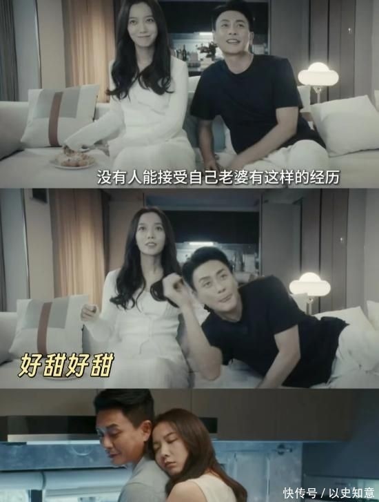 即使面对摄像机,两人依旧十指紧扣,神情柔和,展现出恩爱非常的一面,营造出幸福家庭的假象。