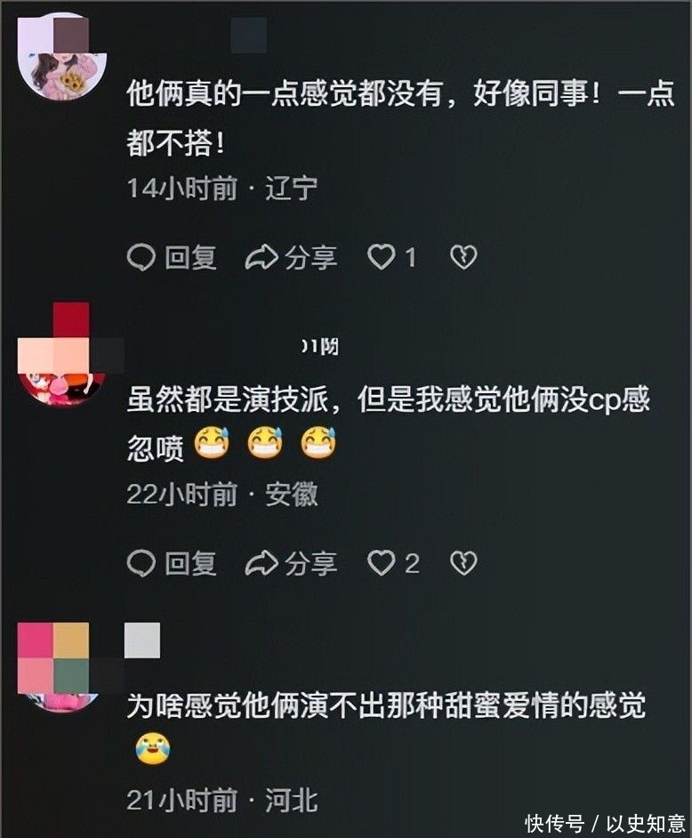 不少网友评价说,这对组合毫无化学反应,根本无法让人相信他们是相爱多年的伴侣。