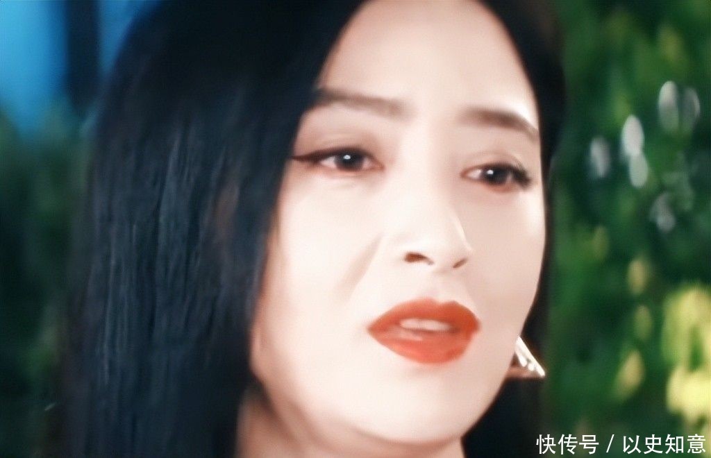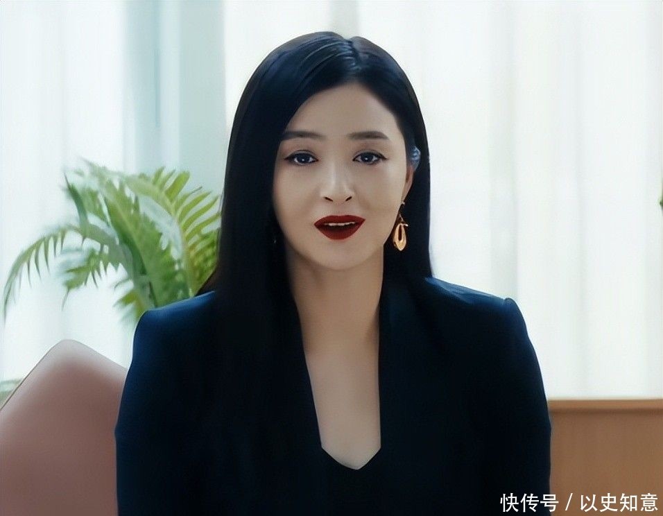 她涂着浓郁到近乎发黑的口红,唇色深邃,气场逼人,不了解剧情的人恐怕真以为她即将黑化登场。